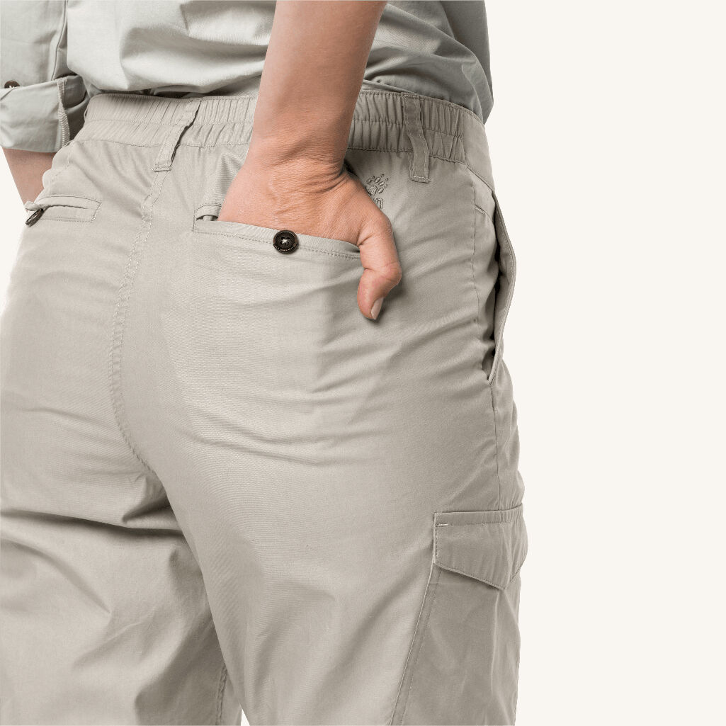 Vindtette friluftsbukser laget av FUNCTION 65 ANTI-MOSQUITO UV, et lett bomullsstoff med svært god pusteevne samt med myggbeskyttelse og UV-beskyttelse. Takket være en svært tett veving blir det umulig for insekter å bite gjennom, samtidig som du får en solbeskyttelsesfaktor på 40+ mens bomullen gir en uslåelig følelse.