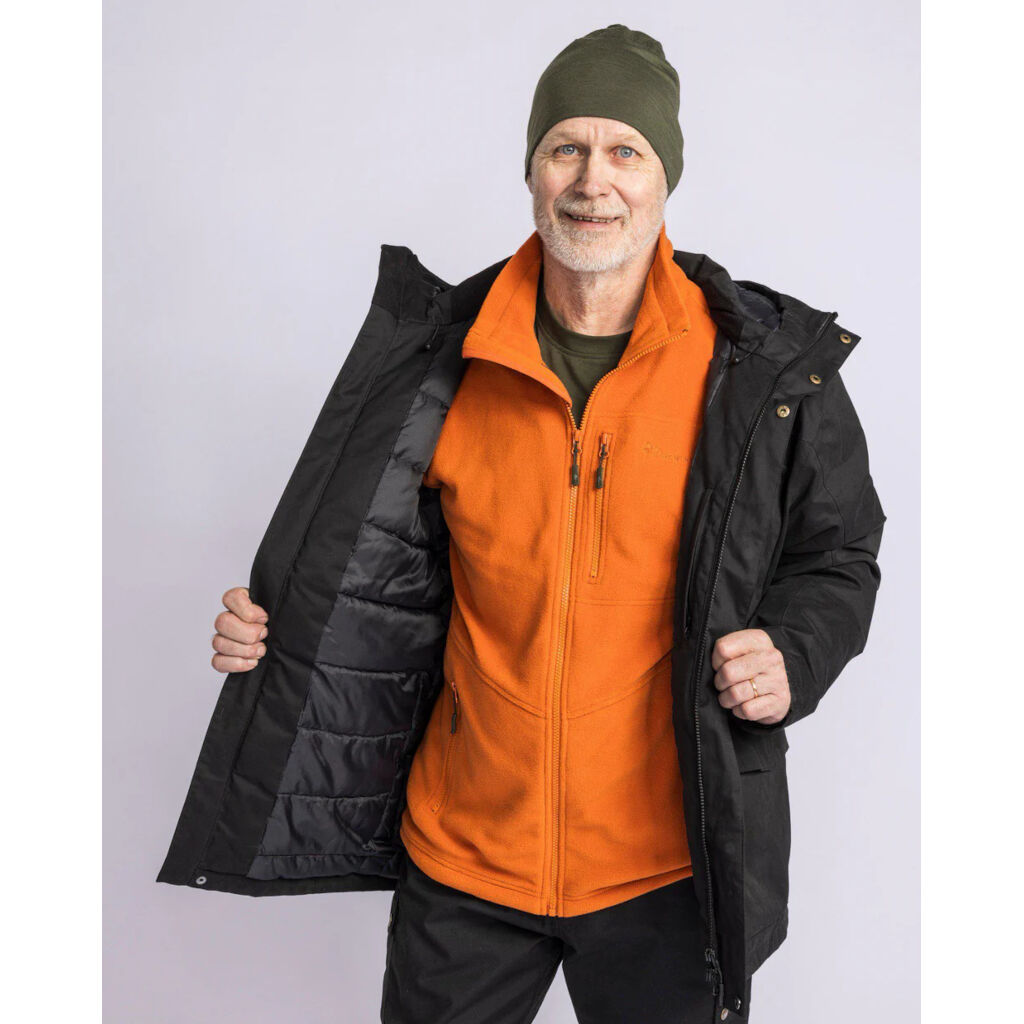 Vinterparkas fra svenske Pinewood som er vind- og vanntett, med en fylling av resirkulert polyester. Jakken har flere praktiske lommer og hette med fleeceforet krage.