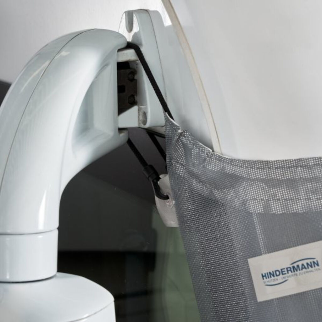 Universalsolskydd från tyska Hindermann som är ett helintegrerad solskydd som fästes på husbilens utsida. Solskyddet håller ute solens strålar samtidigt som man fortfarande kan se ut från husbilens insida.