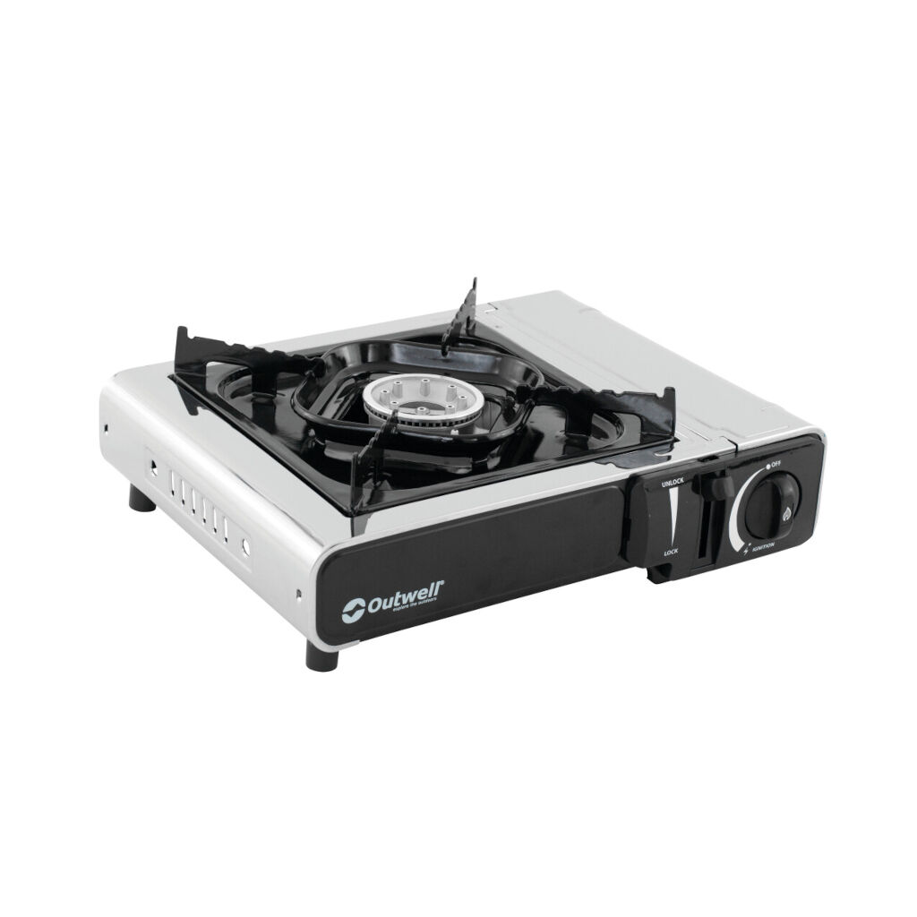 Campingspiss for engangsflasker med en brenner på 2200W. Føtter med godt grep gjør at spissen står stabilt, og den lave profilen gjør den svært pakkvennlig. Veske i hardplast gjør den lett å transportere med resten av campingutstyret.