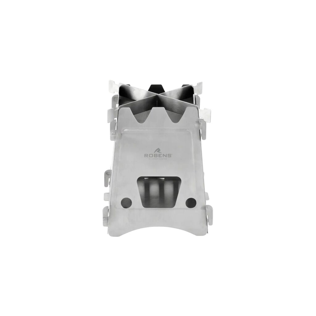 Friluftskjøkken for ved, pinner eller annet brennbart fra naturen. Brenselet kan mates inn fra siden under matlaging. Kjøkkenet kan også brukes med spritbrenner eller brenseltabletter. Når det ikke er i bruk, foldes det sammen til en flat pakke som tar svært liten plass i packningen.