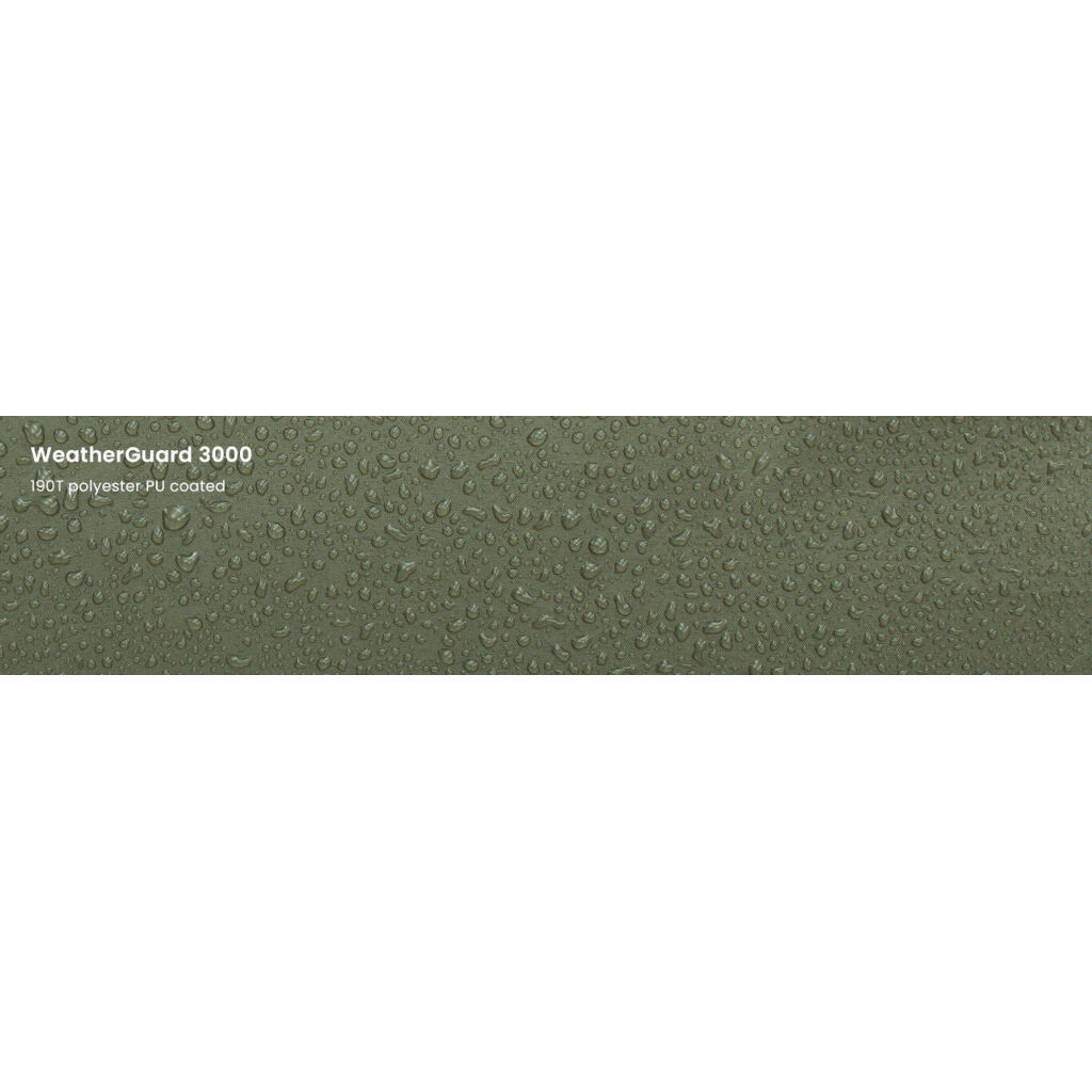 | Tältduk | WeatherGuard 3000, 190T polyester PU-belagt, PFC-fri vannavstøtende, flammehemmende |