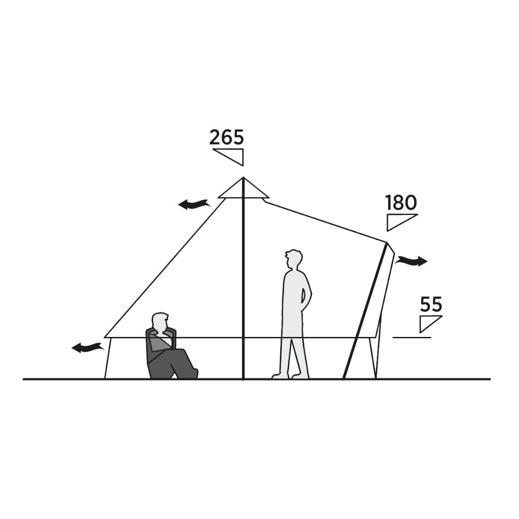 Takket være enkel montering av sentrum- og A-rammestang trenger du kun å stramme teltduken med teltlinene så er teltet på plass. Ved å bruke ekstra mange teltliner har teltet en veldig god stabilitet. Tipidesignet med beskyttet inngang gir også et telt som er fint å sitte i og omgås i når været tvinger en inn i teltet. Åpningen har også en ekstra myggnettdør for varme dager og kvelder. Helt vanntett duk med tapede sømmer holder dere tørre uansett hvilket vær som byr på.