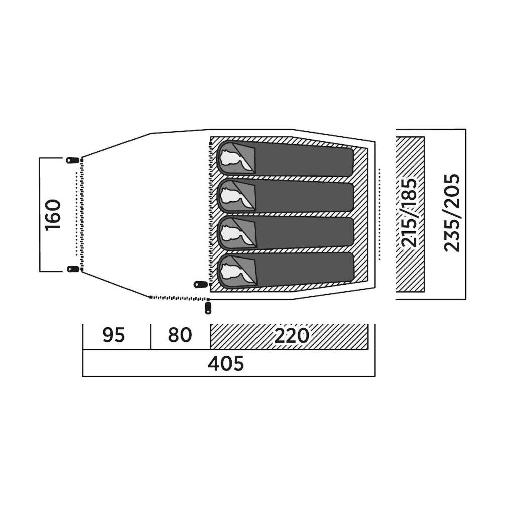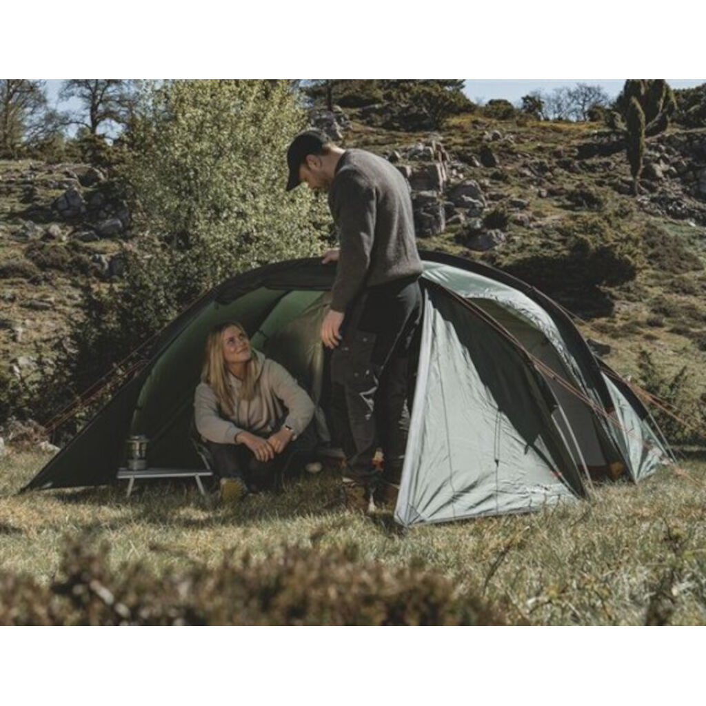 Pasvik 4 er et romslig og prisgunstig 4-personers telt. Teltet har en vanntett duk med 3000 mm vannsøyle og teipede sømmer for god beskyttelse mot regn.