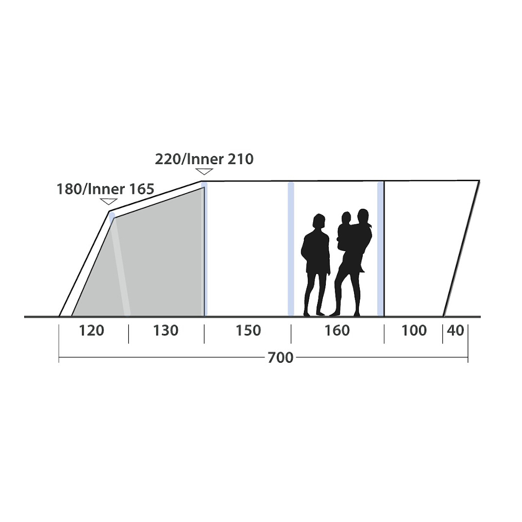 - Forsterkninger på utsatte steder på duken samt Outwell Rigid Air System gjør at teltet klarer ekstreme vindstyrker på opptil 28 m/s