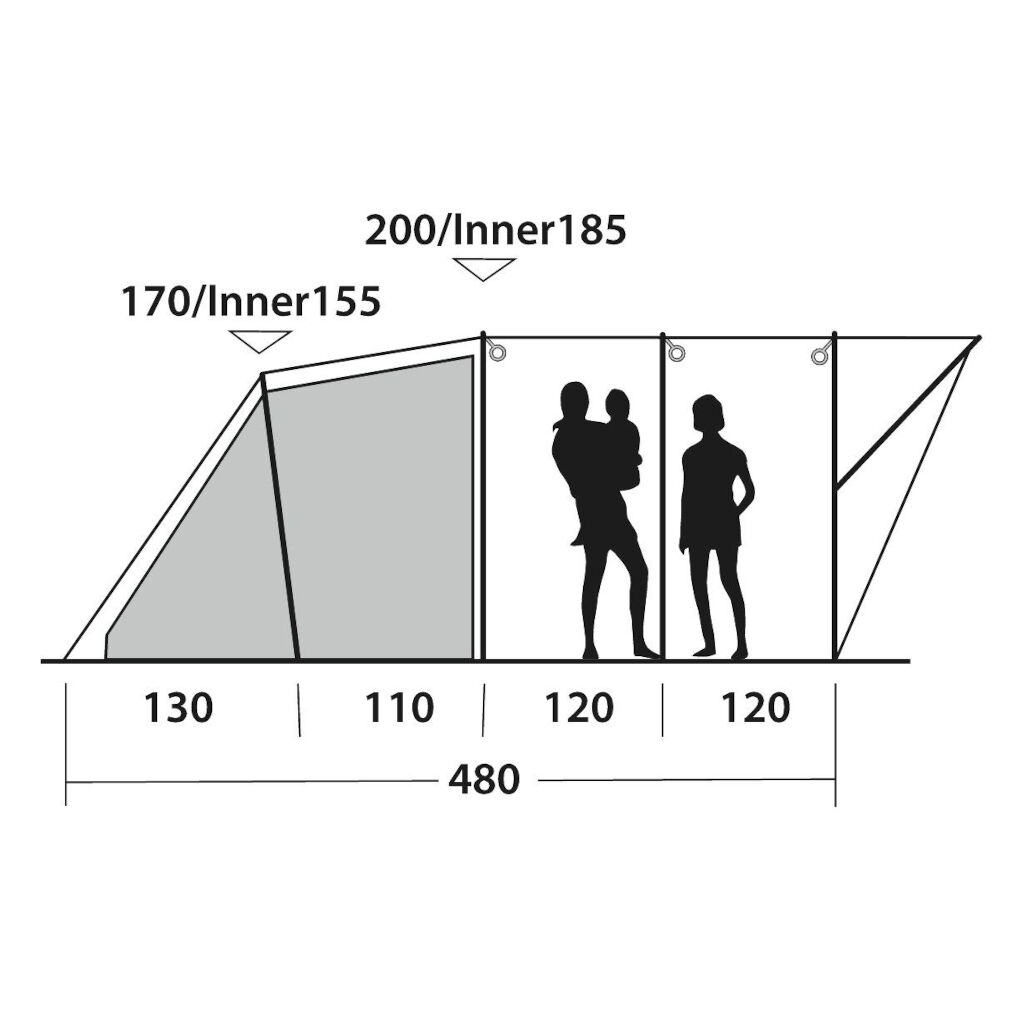 Familietelt for den aktive familien som leter etter et telt som er enkelt å sette opp, men som har god plass til å samles om kvelden eller ved dårlig vær. Fastsydd gulv under hele teltet gir et godt klima inne i teltet og beskytter mot trekk, fukt og småkryp. Et romslig oppholdsrom gir god plass til møbler. Soverom med mørkere vegger og tre soverom der mellomveggene kan åpnes hvis man ønsker å samle familien i ett stort soverom.