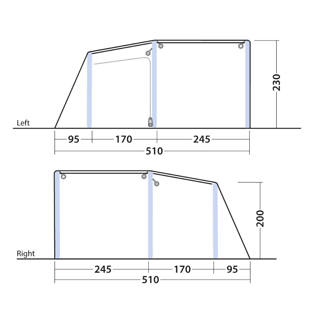 - Outwell Quick & Quiet Tilgang - Døren til lagringsområdet har glidelås og magnetstripe for enkel og rask åpning/lukking.