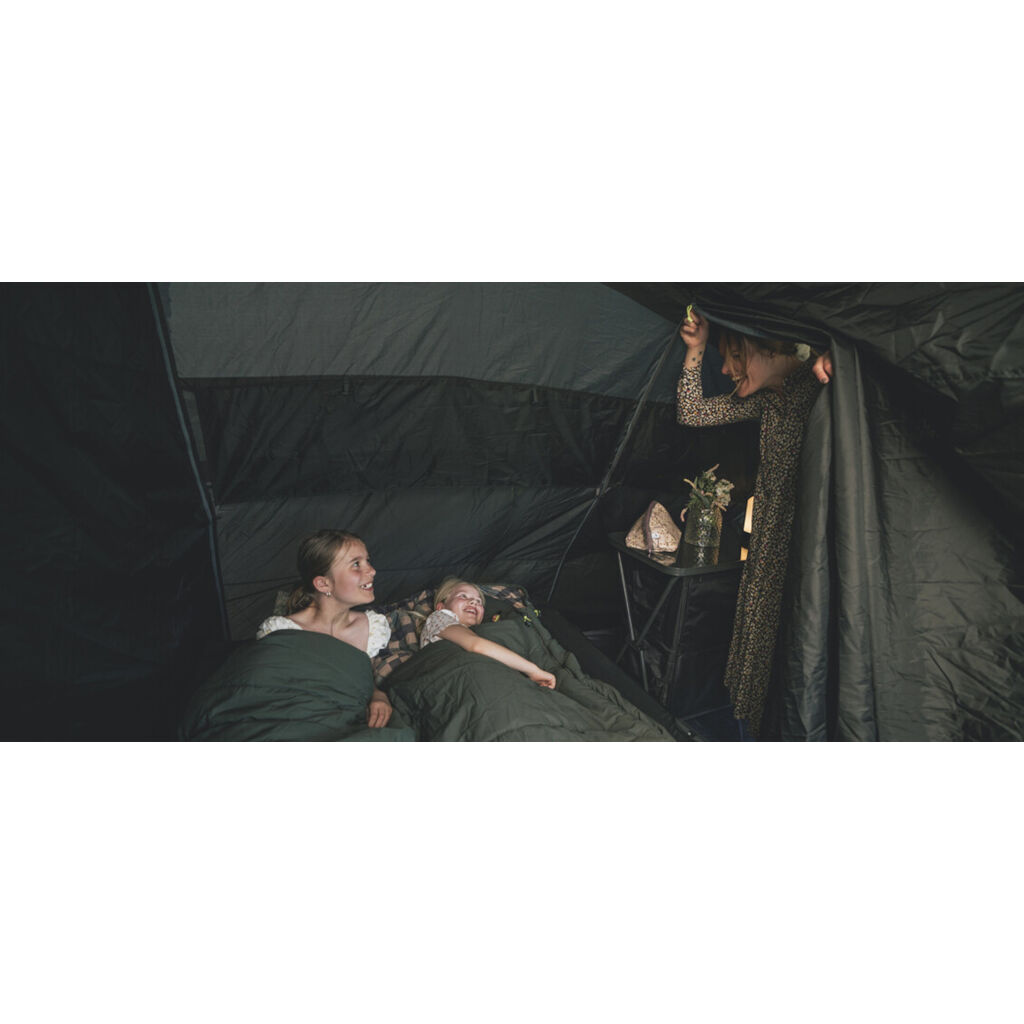 - Outwell Quick & Quiet Innvendig dør - Ett soverom har en magnetstripe i tillegg til glidelåsen for lydløs åpning og lukking