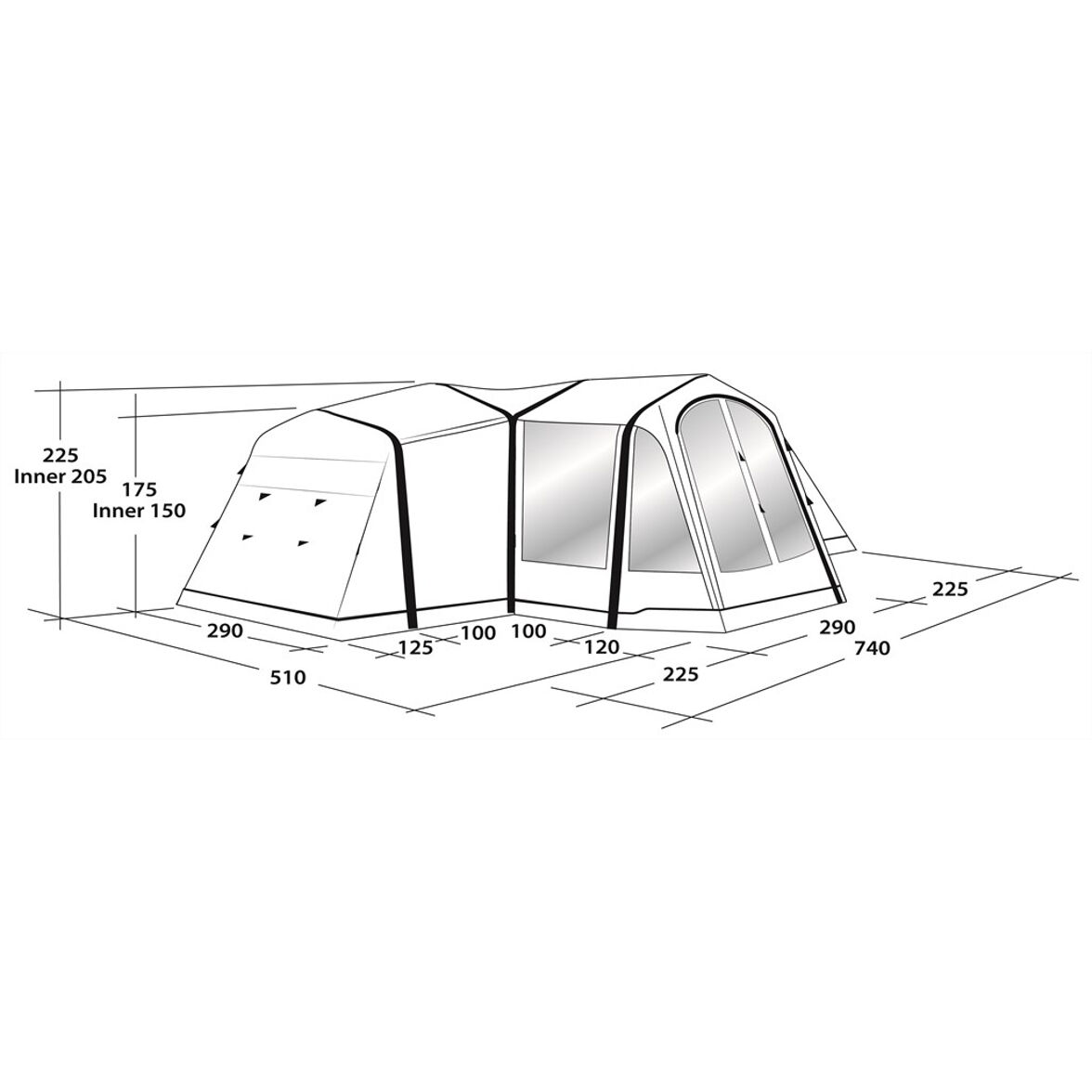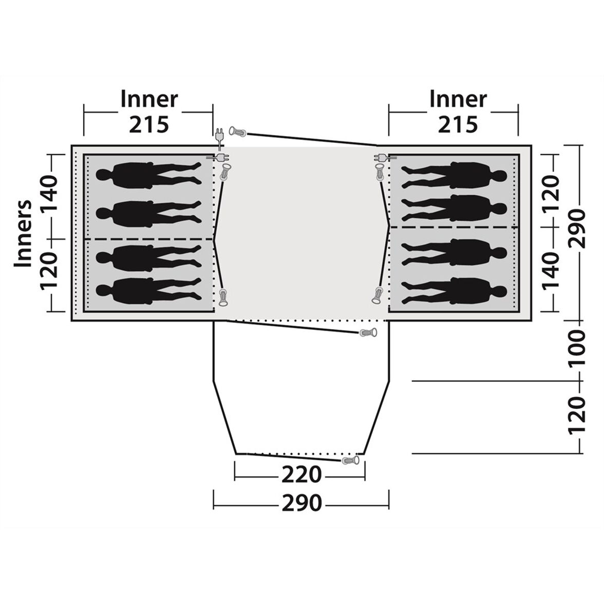 Tältet har två sovkabiner med två sovrum för två personer i respektive kabin. Innertältet har ett kraftigare mörkt tak med mindre ljusgenomsläpp vilket håller nere ljuset på morgonen. Väggen mellan sovrummen går ta bort för att samla fyra personer i samma rum.