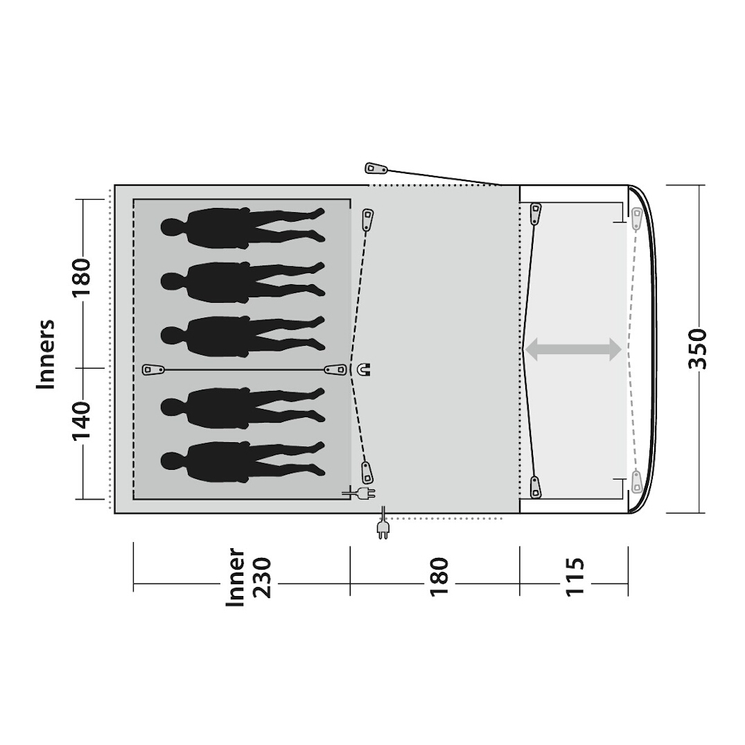 - Outwell HookTrack System - heng taklamper eller utstyr opp til 1,5 kg langs listen (10 festepunkter inkludert)