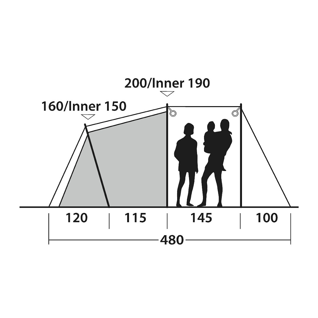 Lettristet familietelt for fem personer med to mørke soverom og et romslig oppholdsrom med ståhøyde. Store tonede vinduer i tre retninger gir et lyst og trivelig oppholdsrom. To innganger hvorav en er regnskyddet gjør teltet lett å plassere og gir ekstra ventilasjon på varme dager.