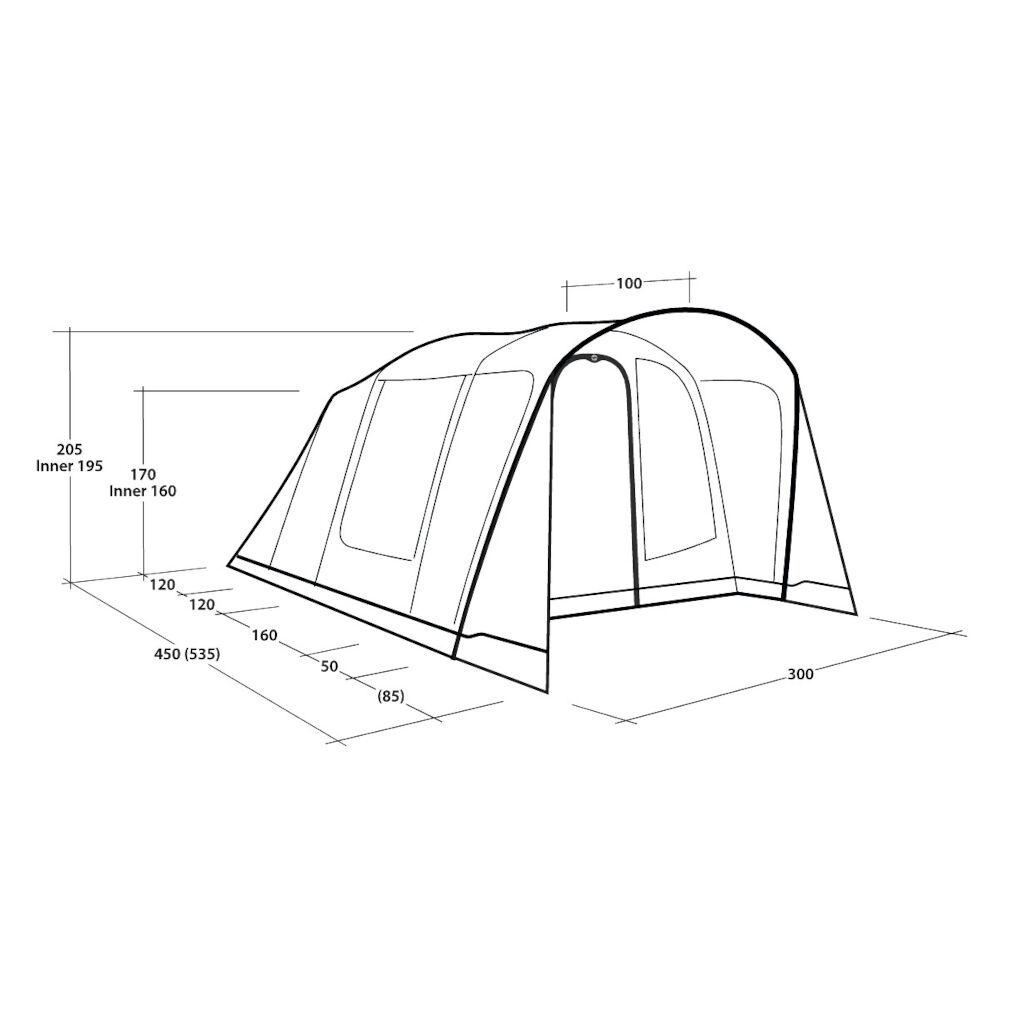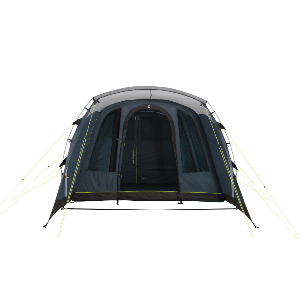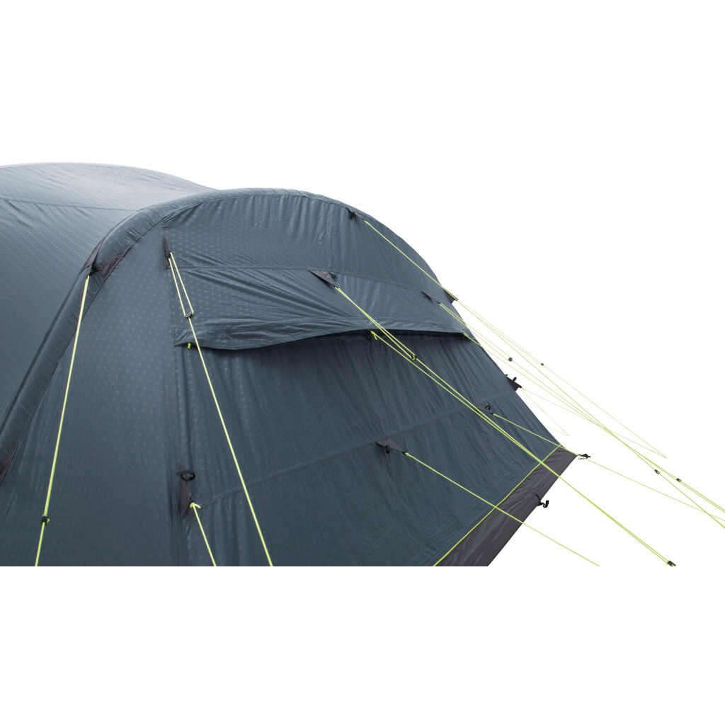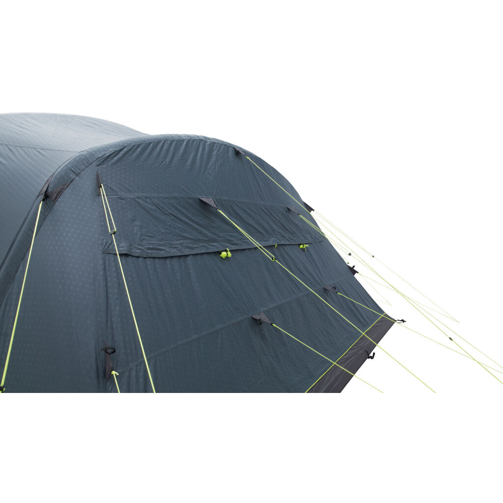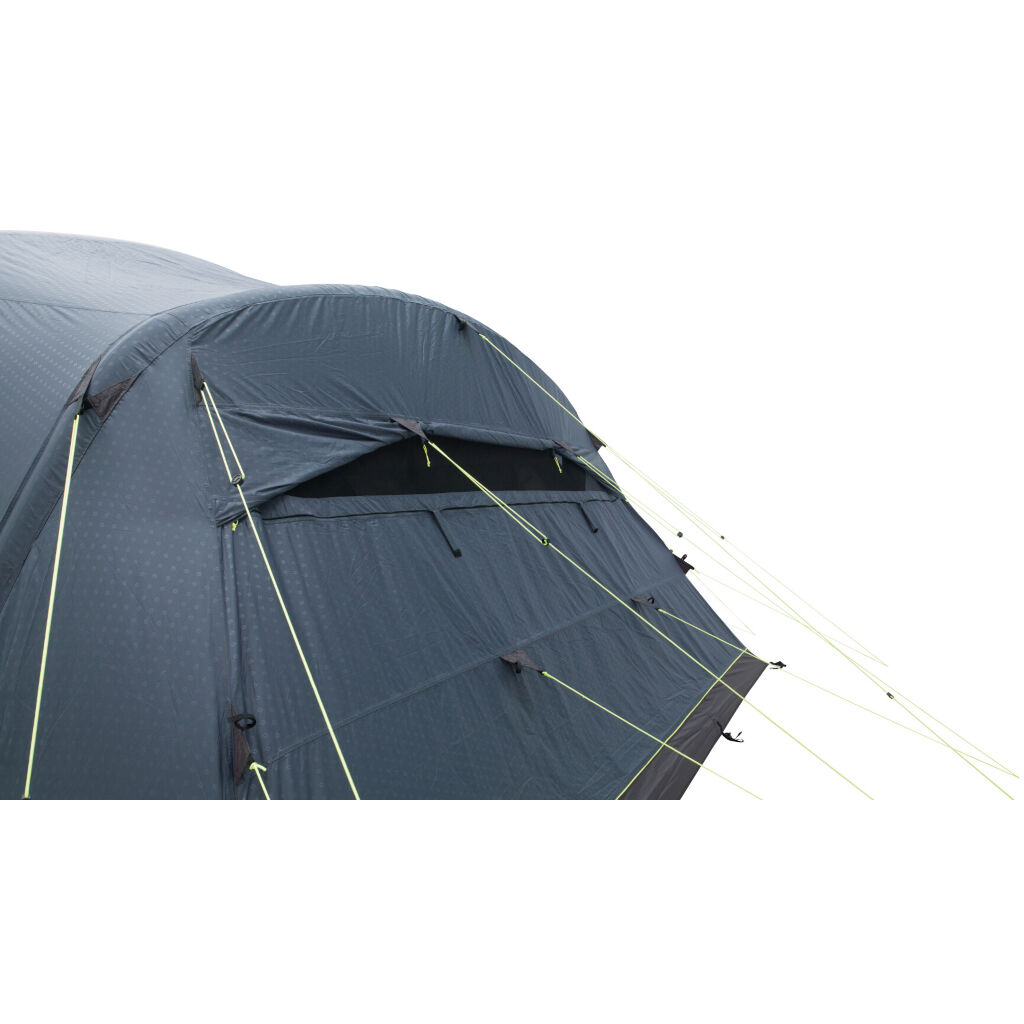 Outwell Sunhill 5 Air er et oppblåsbart familietelt for familier med opptil tre barn. Takket være at det er relativt lett for å være et lufttelt, går det bra å reise alene, noe som gjør at det også passer for deg som ønsker å kunne dra og campe alene med barna. I stedet for stenger bruker det Outwells Rigid Air-teknologi der man har byttet ut stengene med luftkanaler for enkel montering. De tre kanalene pumpes enkelt opp via ventilen i nedre kant på den ene siden av teltet. Den eneste stangen som inngår er den for den beskyttede inngangen, og den kan man montere når teltet er reist. I tillegg til den enkle monteringen har teltet en slitesterk teltduk som ikke bare motstår regn og vind, men også rasler mindre enn enklere duker når den beveger seg. Store vinduer gir et lyst og trivelig telt, og ønsker man å redusere innsynet, finnes det gardiner på alle vinduer.
