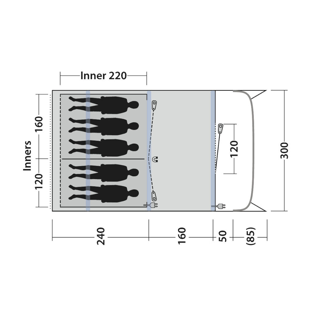 Kom raskt på plass med dette hurtigoppsatte fem-personers teltet fra Outwell som bruker luftkanaler i stedet for vanlige stenger. En soveavdeling med lavere lysinnslipp som kan deles opp i to soverom gir god sovekomfort. Oppholdsrommet har plass til å møblere med bord og stoler og har et helt fastsydd gulv som beskytter mot kaldras, småkryp og kondens. Teltet har en stor beskyttet åpning foran der det er enkelt å legge fra seg sko og utstyr man ikke ønsker å ta inn i teltet.