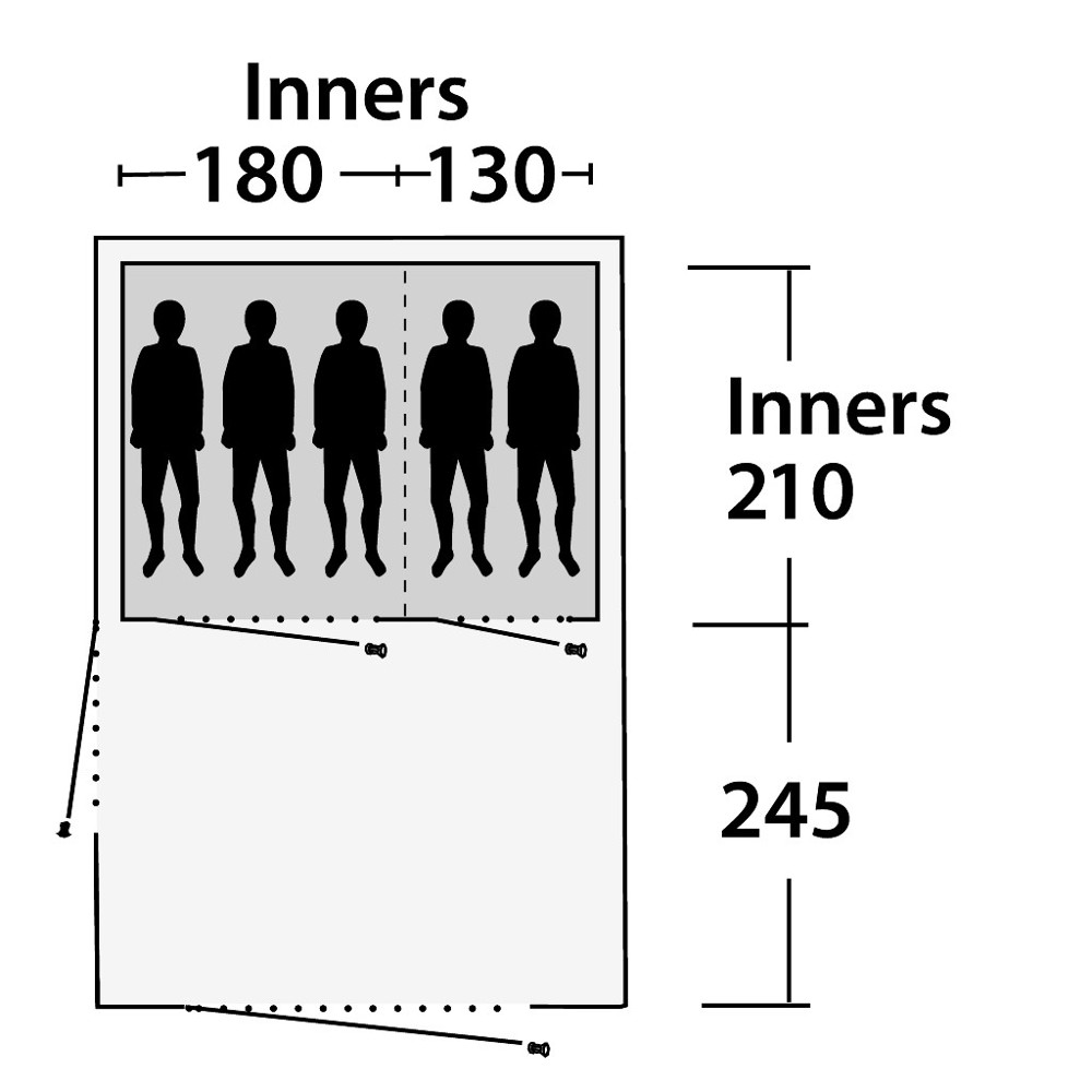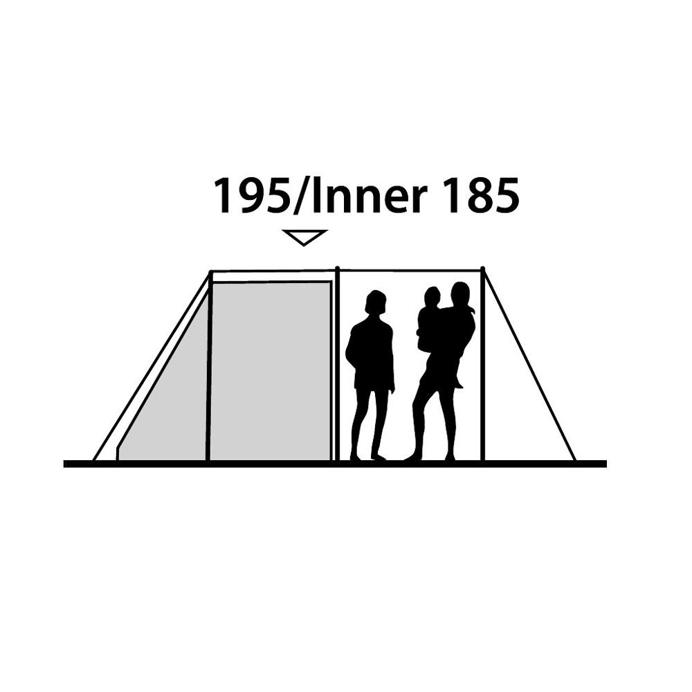 Klassiskt familjetält för upp till fem personer med två sovrum och ett rymligt allrum med ståhöjd.