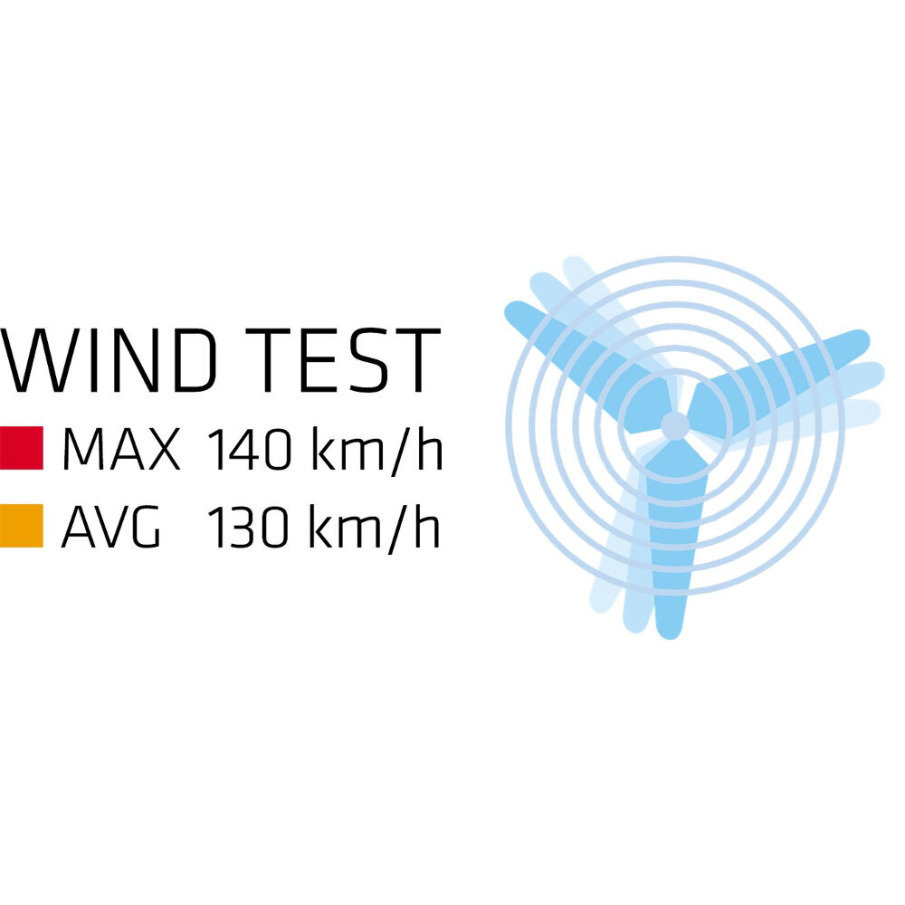 - Robust: Testet mot vind opp til 140 km/h