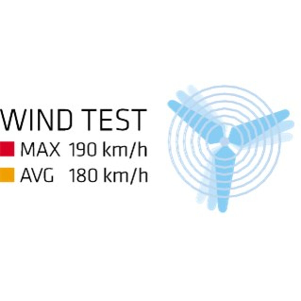 - Stabilt, testet for vind opp til 190 km/h