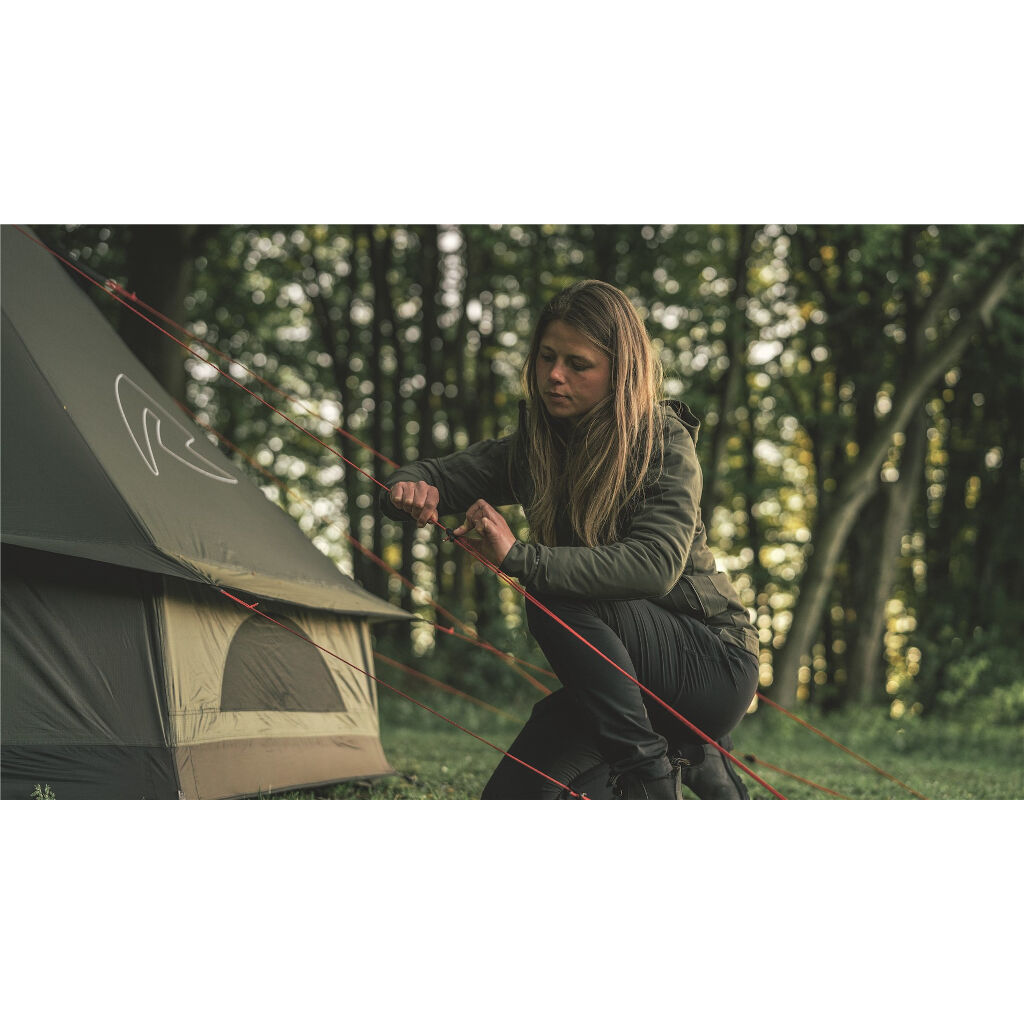 Tipitelt som passer familien eller den mindre gruppen. Kan kompletteres med innertelt, matte eller ovn. Duk med ripstop og forsterkede fester gir et stabilt og sikkert telt. Det forseglede gulvet beskytter mot kulde og småkryp.