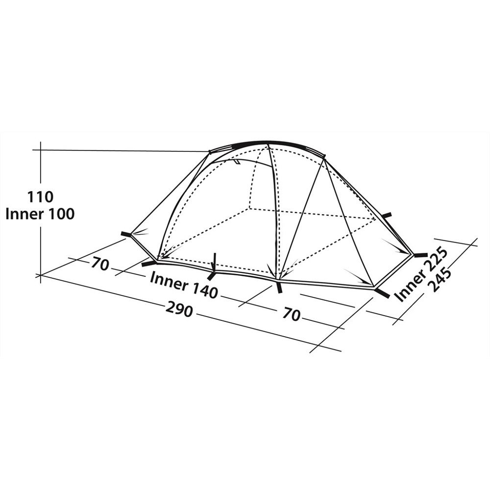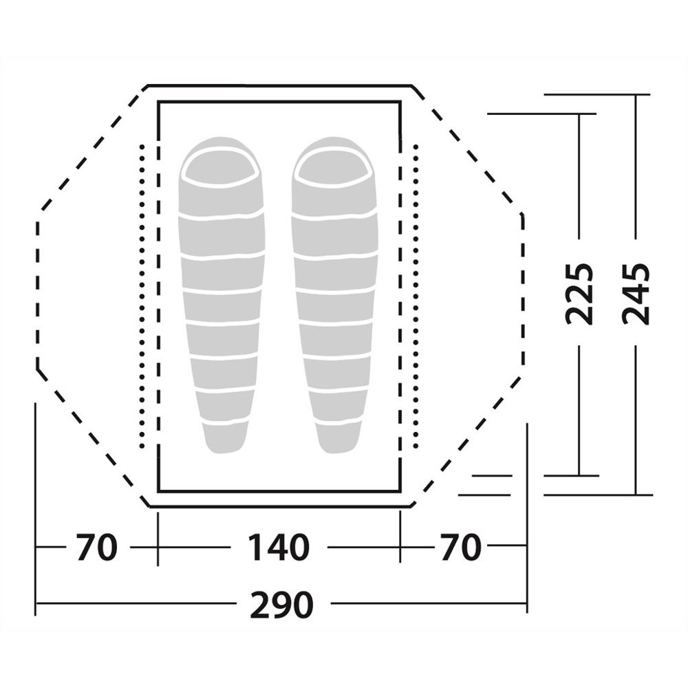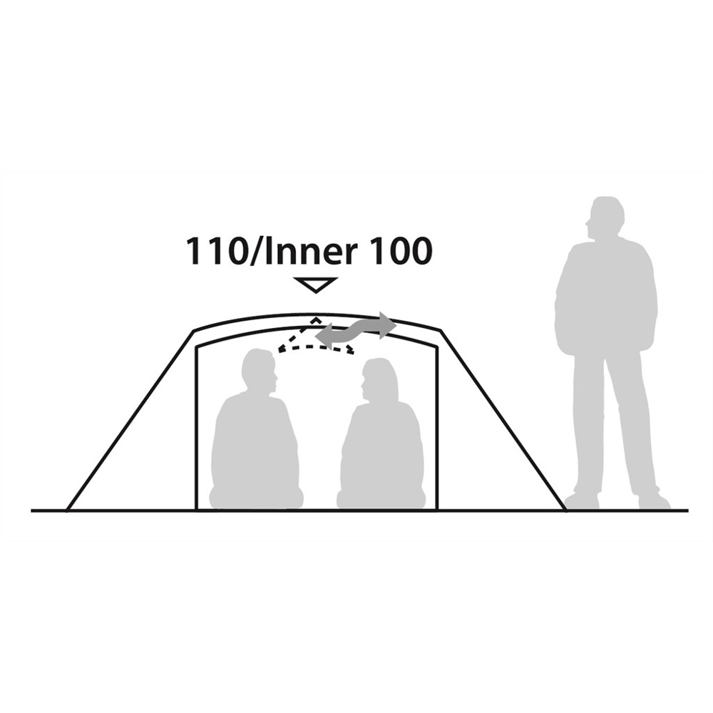 Kombinationen av en klassisk kupoltältsdesign och en kort övergående tältstång ger ett flexibelt tält med så bra höjd att två personer kan sitta upprätt i tältet. Med två öppningar får man även bra med plats för utrustning och matlagning.