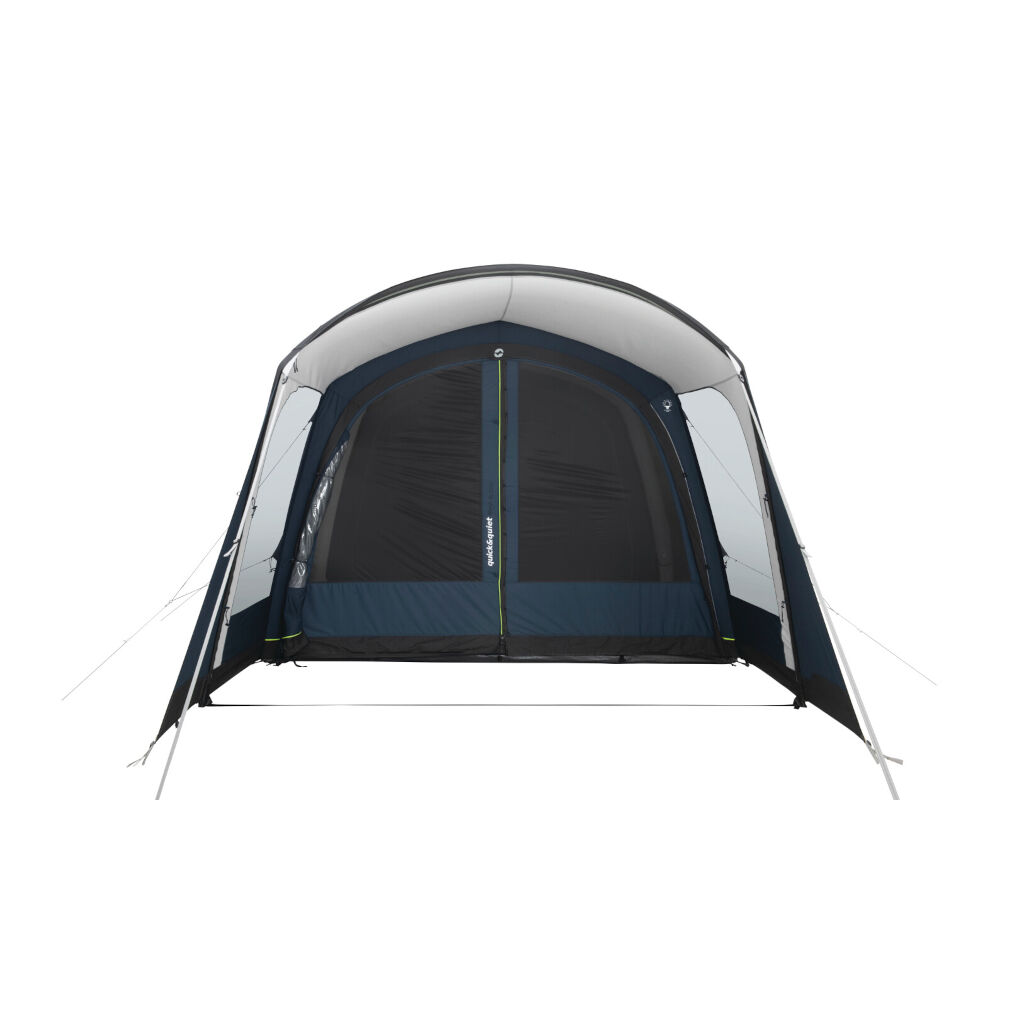 Luftkanaler i stedet for stenger gir enkel montering. En bra detalj er også at åpningen foran dels kan åpnes helt for å bruke teltets oppholdsrom som et beskyttet uterom samt også har en posisjon der man takket være en magnetlist kan gå inn og ut av teltet uten å bruke glidelås.