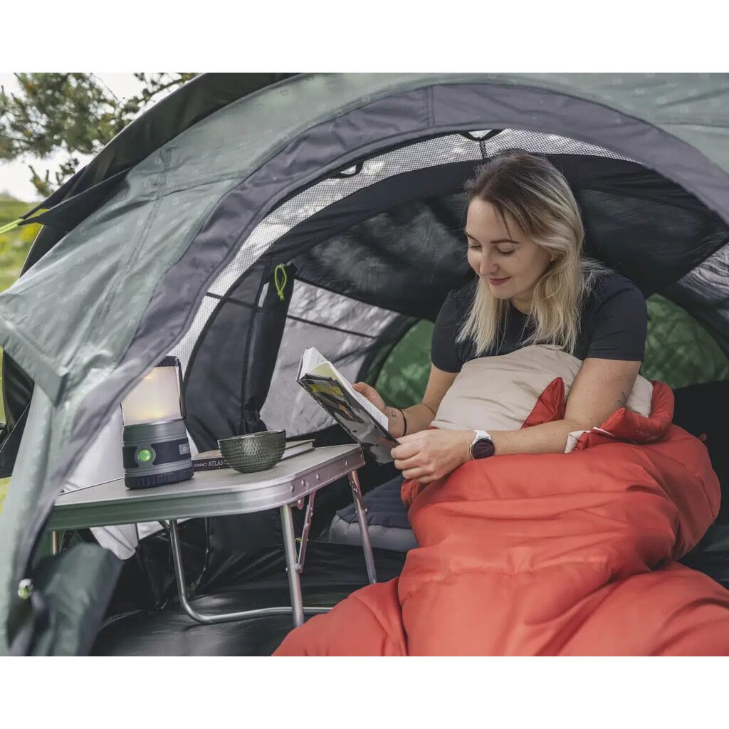 Et pålitelig og lettoppsettelig telt som fungerer like godt til camping og sykkel-/motorsykkelferie som i skogen eller på fottur. En sovekabin med lavt lysinnslipp gir god komfort, og et fortelt med gulv gir god beskyttelse for utstyr. Vinduer med gardiner i front slipper inn lys og gir utsikt uten at du trenger å åpne døren.