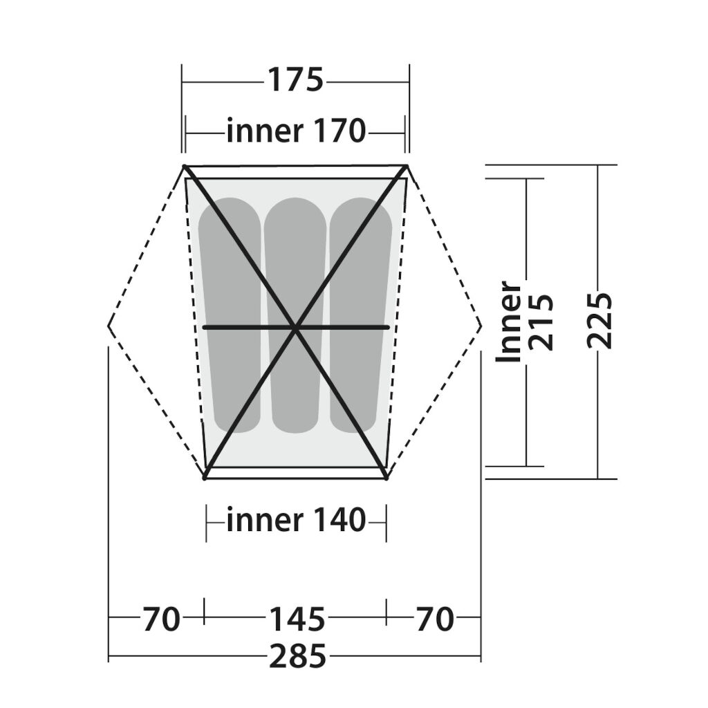 Frittstående 3-manns kuppeltelt med nok høyde til at 3 personer kan sitte oppreist i teltet.Teltet kombinerer aluminiumsstenger med et godt teltstoff med forsterkninger på utsatte punkter, noe som gjør det meget motstandsdyktig mot vær og vind. Doble åpninger gjør teltet lett tilgjengelig og lett å ventilere på varme dager.