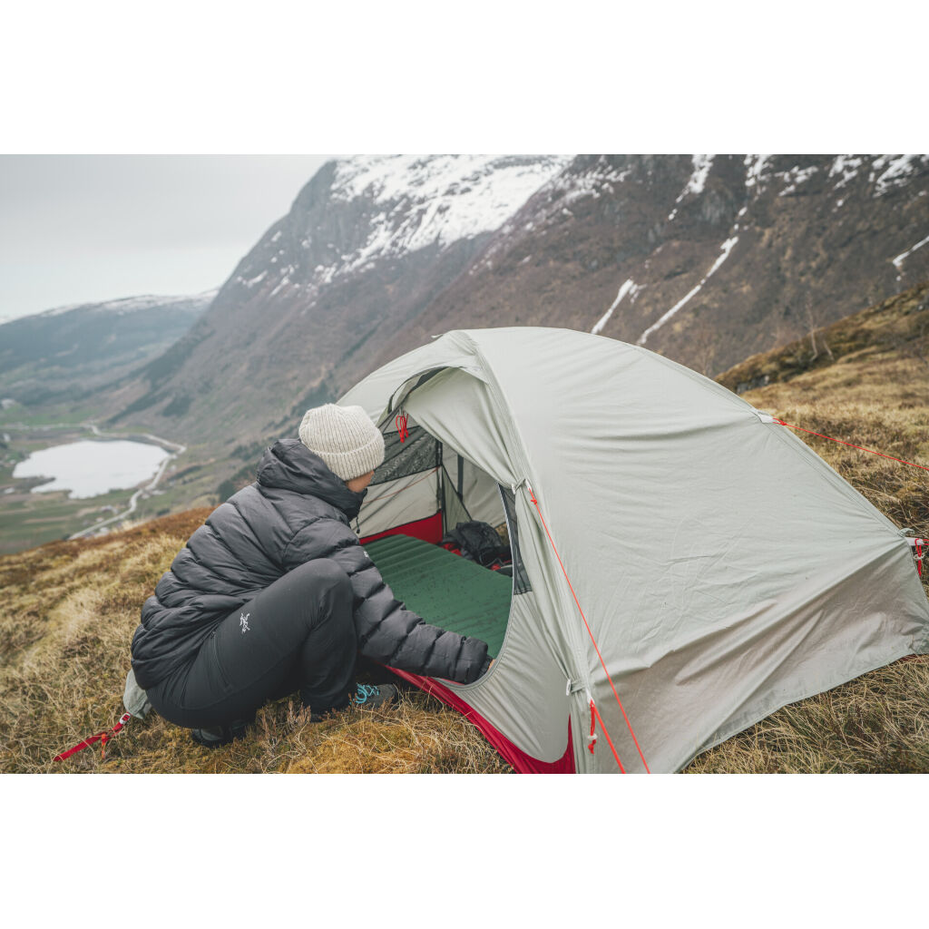 | Tältduk | Hydrotex NRS-T, 20D nylon 380T, ripstop-nylon med silikonbelagt utside og PU-belagt innside. |
