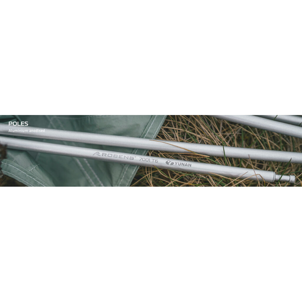 Klassisk kuppeltelt med to åpninger og god takhøyde. En kort mønestang gir mer plass i forrommet og god høyde ved dørene. Ved å fokusere på det viktigste – stenger og duk – har Robens utviklet et svært slitesterkt og prisgunstig telt som tåler også tøffere forhold. På varme netter kan teltet brukes uten ytterduken montert.