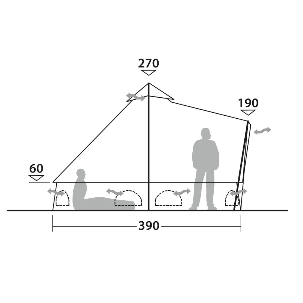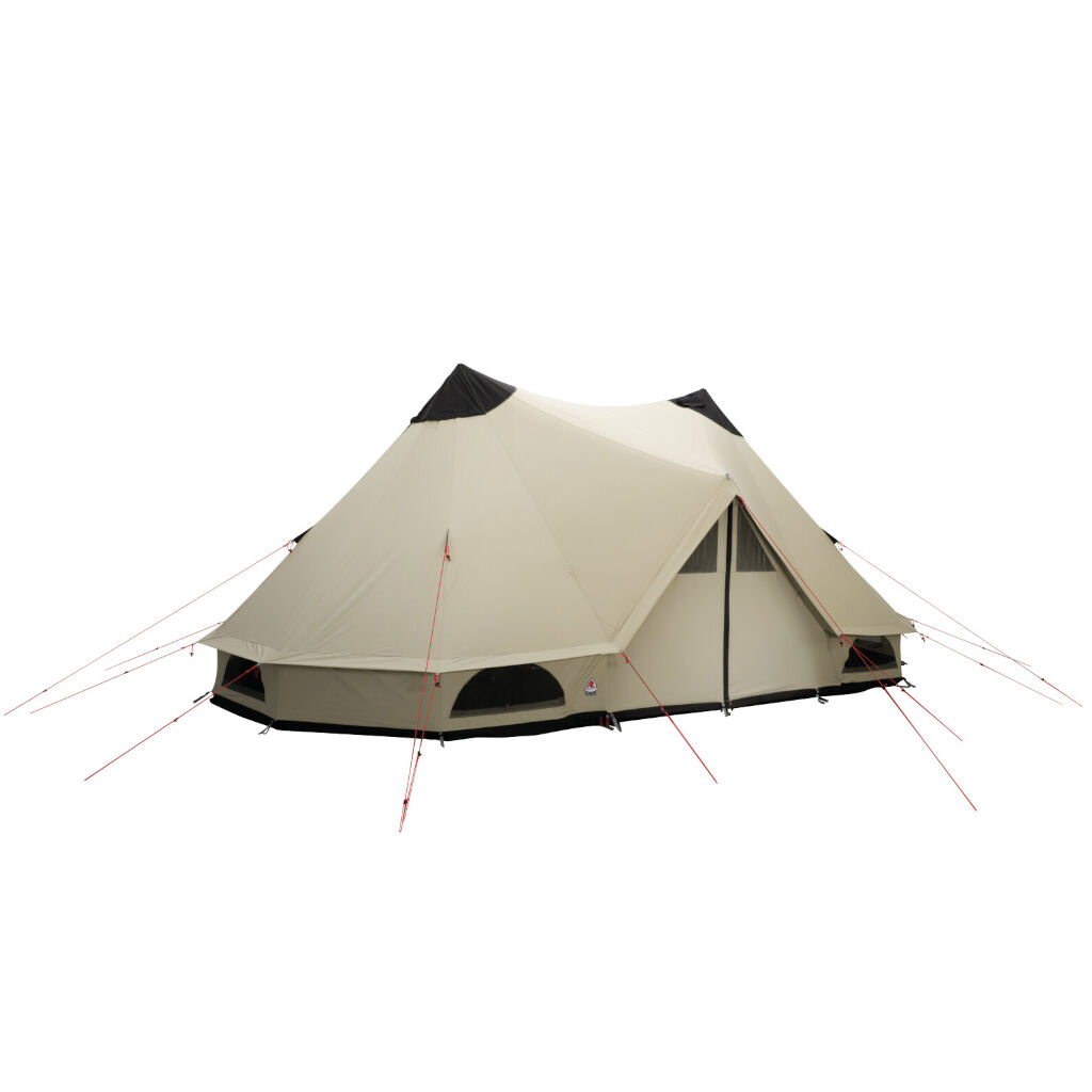Ser dere etter følelsen av å komme så nær naturen som mulig når dere camperer, så er en tipi vanskelig å slå. Robens Klondike Twin bygger sammen to tipitelt for å skape et ekstra område mellom sentrumstengene. En stor fordel for dere som ønsker å kunne møblere med bord og stoler eller en større seng, noe sentrumstangen setter stopp for i vanlige tipitelt. Teltet har en regnsikret inngang og har soveplasser for opptil 12 personer, noe som gjør at det passer både for den større familien (med eller uten innertelt), speiderforeningen eller gruppen. De kraftige sentrumstengene på hver side gjør teltet enkelt å reise, og i kombinasjon med den kraftige duken får man et skikkelig stabilt telt som tåler vindstyrker på opptil 200 km/h. Den høye kanten gir en bedre høyde i hele teltet, noe som gir stor forskjell når man innreder teltet.