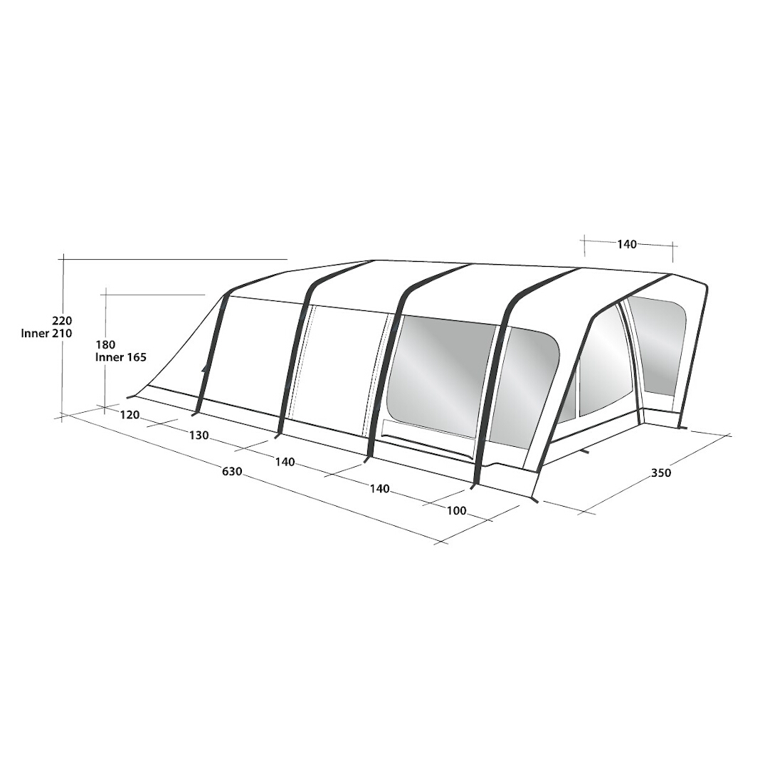- Forsterkninger på utsatte steder på duken samt Outwell Rigid Air System gjør at teltet tåler ekstreme vindstyrker på opptil 28 m/s