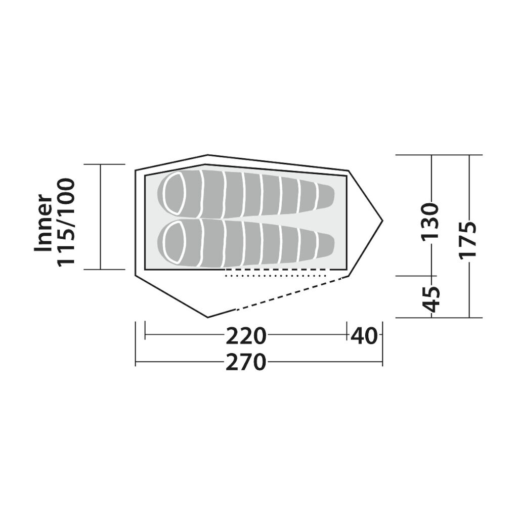 - Inngangsparti og lite lagringsrom i fotenden (tilgjengelig via glidelås i innerteltet)