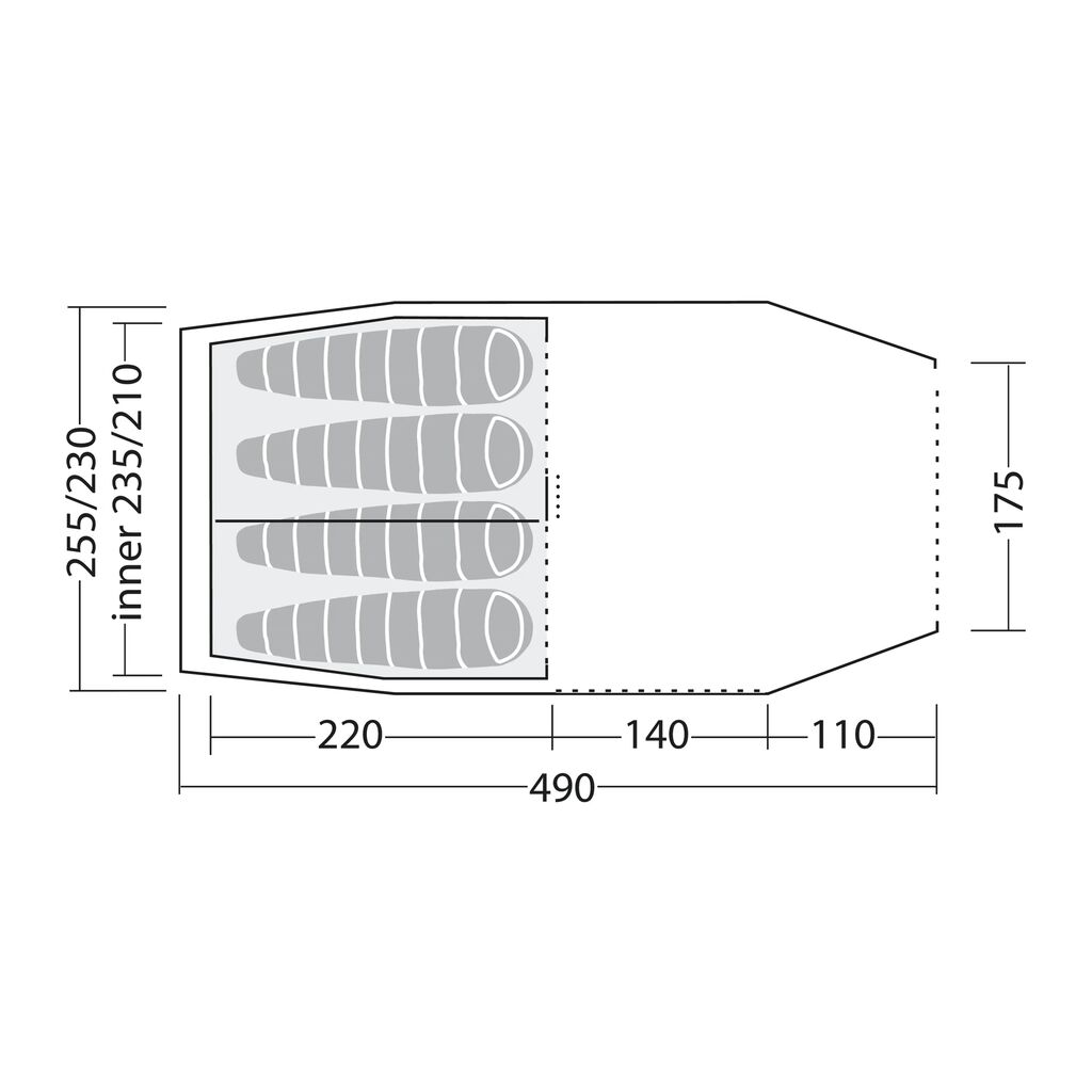Cima Versa 4 er et romslig og prisgunstig friluftstelt for 4 personer. Med ståhøyde i oppholdsrommet, vindu og fleksibel dør som enten kan rulles helt bort eller brukes som solskjerm (stenger selges separat), er dette et allsidig telt for mange bruksområder. Duken er vanntett med 4000 mm vannsøyle og tapede sømmer som gir god beskyttelse mot regn.
