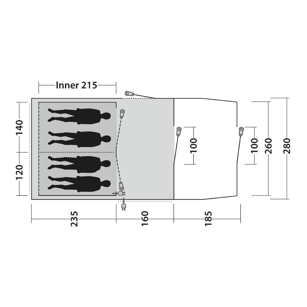 - Tre soner gir familier våtrom, tørt oppholdsrom og soverom. Det fremre innerteltet er ideelt som ekstra soverom eller lagringsplass, og det kan enkelt fjernes for mer plass