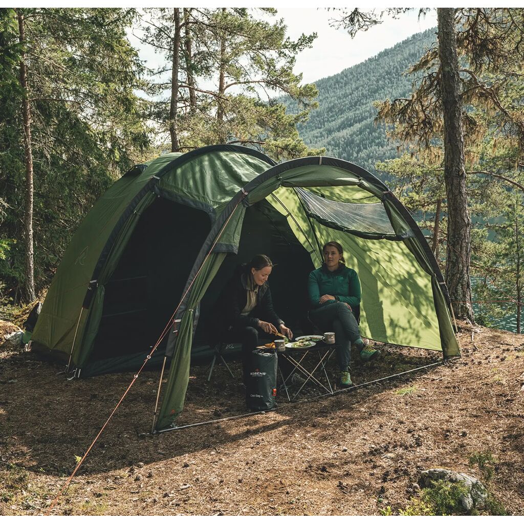 Paso Flex 5 er et stabilt kuppeltelt med ståhøyde i innerteltet. Inngang både foran og bak med fleksible døralternativer gir rask og regnsikker tilgang til teltet. Et perfekt telt for nye campere som ønsker en rimelig og komfortabel overnatting.