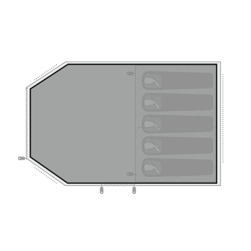 LES MERSkreddersydd gulvbeskyttelse som plasseres under familieteltet før det settes opp. Gulvbeskytteren holder teltets gulvduk ren og tørr og reduserer slitasje på den.