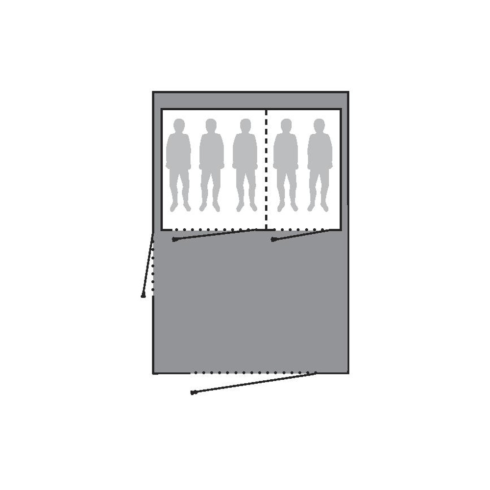 Måttanpassat golvskydd som läggs under familjetältet innan man reser det. Golvskyddet håller tältets golvduk ren och torr samt så minskar det slitaget på den.