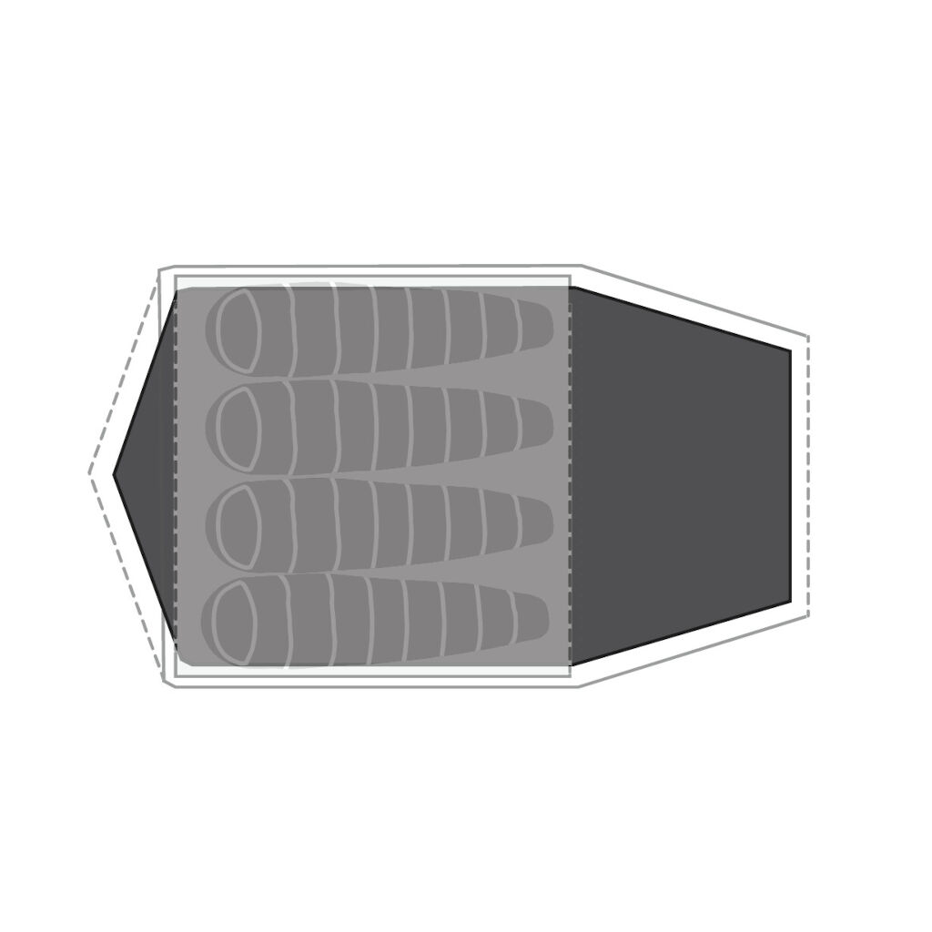 Bunnduk/footprint til Robens Lago Flex 4 telt. Reduserer fukt fra bakken som trenger inn i teltet og gir en tørr flate for oppbevaring og matlaging. Beskytter også teltet mot slitasje og skader.