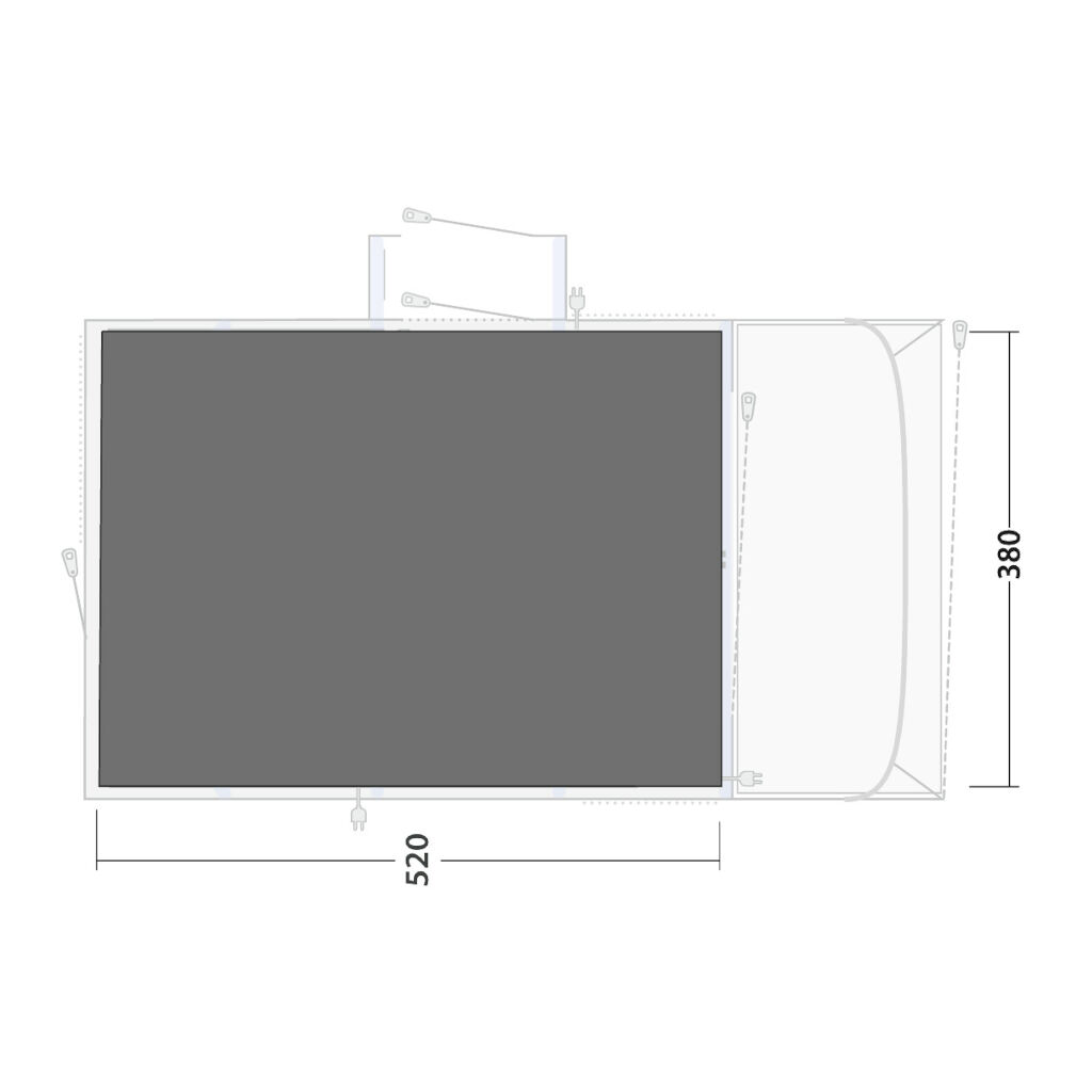 LES MERSpesialtilpasset gulvbeskyttelse som legges under familieteltet før det settes opp. Gulvbeskyttelsen holder teltets bunnduk ren og tørr og reduserer slitasjen på den.