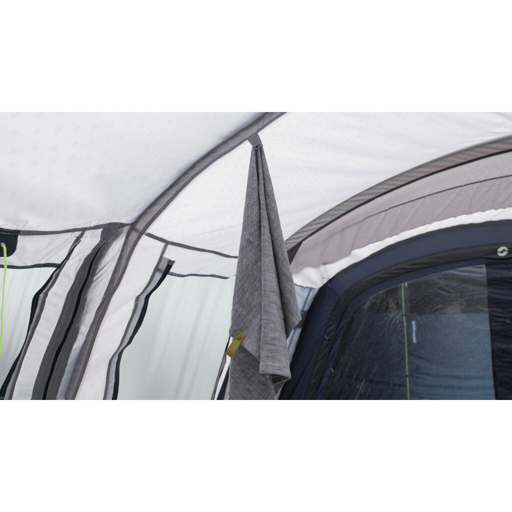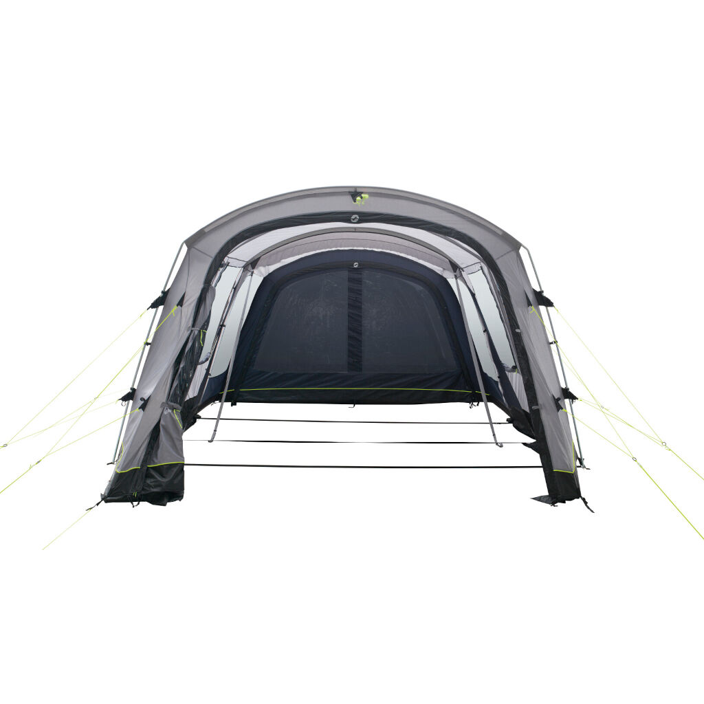 En praktisk utvidelse som gir ditt familietelt et ekstra rom foran eller som forlenger teltets oppholdsrom. Takket være den store døren foran samt en åpning på siden kan du på varme dager enkelt åpne opp for å få en beskyttet uteplass foran teltet. Utvidelsen fungerer for å kunne spise ute uansett vær, for matlaging på regnfulle dager eller rett og slett for et ekstra rom for barnevogn, sykler osv. Monteres enkelt med klikklåser mot teltets stenger eller festepunktene på ditt air telt. Utvidelsen overlapper teltet og det elastiske festet gir en god tetning mot teltet og minimerer trekk mellom telt og utvidelse.