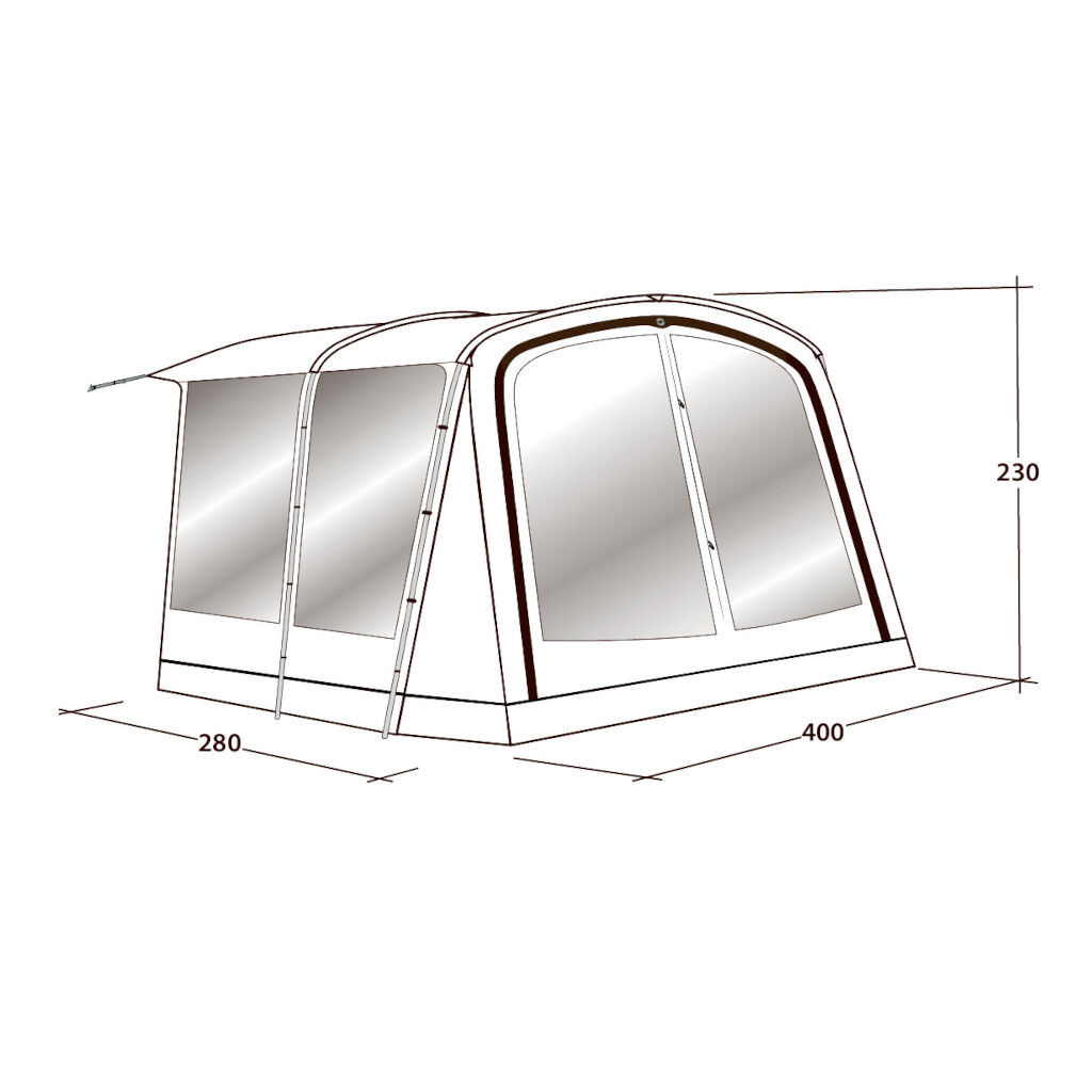Gi familieteltet ditt et ekstra rom foran med denne lettmonterte forlengelsen. Perfekt for å spise, lage mat eller oppbevare utstyr i. Takket være en stor åpning foran samt en på siden, er det lett å åpne opp rommet på varme dager. Passer Outwell-telt med en front på 370 til 390 cm.