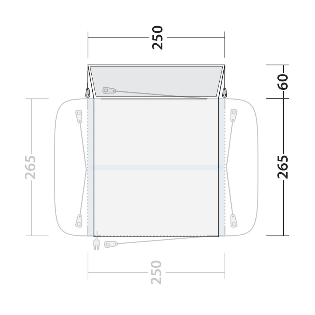 Outwell Crossville 250SA Tall Connection ær en separat sluse som kan kobles til teltet Outwell Crossville 250SA. Slusen passer høyre biler med en tilkoblingshøyde mellom 240 - 270 cm som Sprinter, Ducato og lignende køretøy. Slusen har æven en beskyttende funksjon takket være ekstra overheng som festes øver teltet.